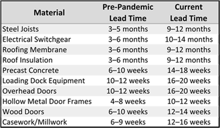 Material lead times and cost increases impact commercial construction