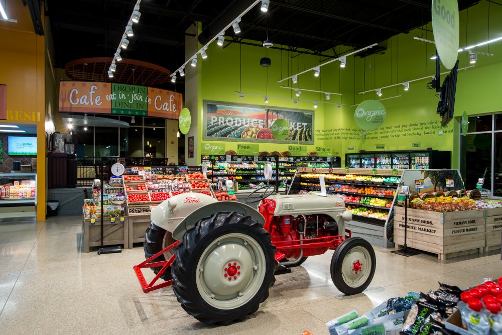 DBS Group and Niemann Holdings celebrated the completion of County Market in Girard, Illinois, with a ribbon cutting ceremony on March 30, 2016, to mark the grand opening of the new grocery store. The only full-service grocery store in the town of 2,000, the original County Market structure was destroyed in a fire last May and had been operating from a mobile unit in the parking lot. The new County Market is 28,000 square feet, 7,000 square feet larger than the original building. It features nine aisles, an expanded organics section, sit-down café, coffee and fountain soda area, full-service deli, hot-food bar and open-bakery along with digital menu and pricing boards. Construction of the County Market began on September 1, 2015. The store features several energy efficient upgrades, including LED lighting throughout, high-efficiency HVAC roof-top units, a building energy management system, polished concrete floors and high-efficiency refrigerated cases. DBS Group provided store planning services, architectural and engineering services and construction services for this project. DBS Group’s design-build delivery allowed the collective team to respond quickly to work through planning, design and budgeting in order to start construction of the new County Market less than four months after the existing County Market was destroyed by a fire.