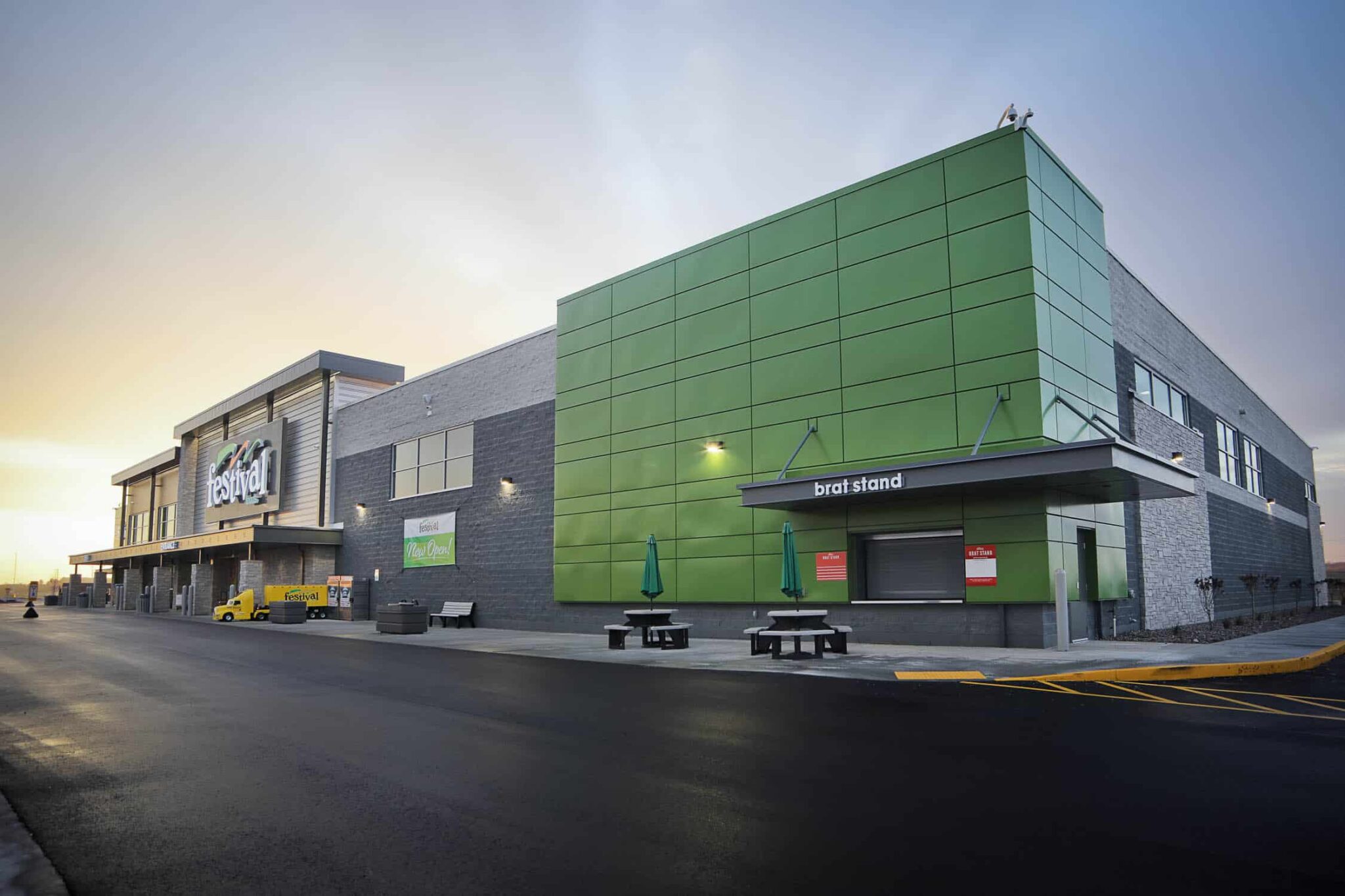 Festival Foods contracted with DBS Group to build a new ground-up 56,875-square-foot grocery store on Chippewa Crossings Boulevard in Chippewa Falls, Wisconsin. Construction began in spring 2023 and was completed in fall 2023.