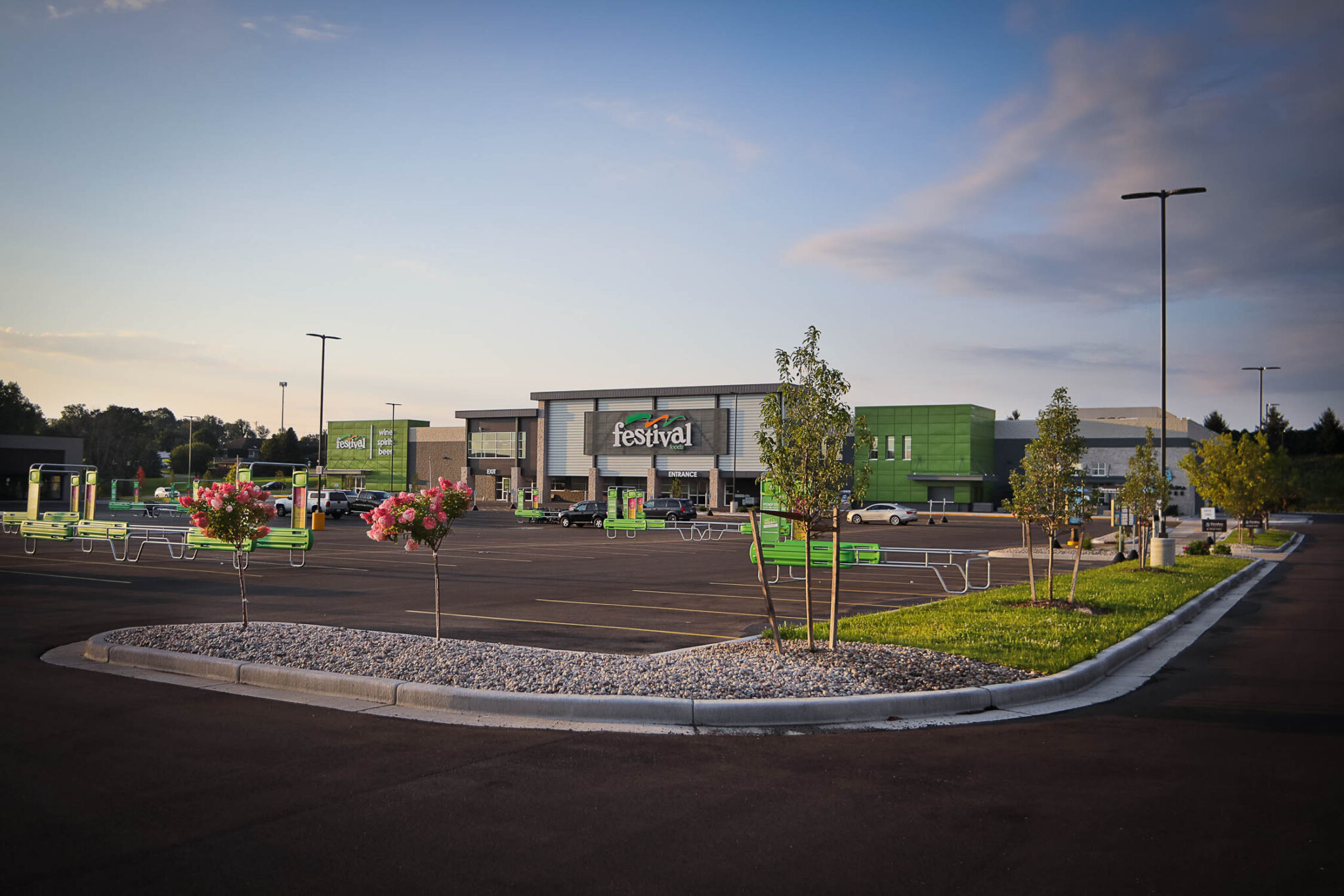 Festival Foods selected DBS Group to serve as the contractor to build a grocery facility in Hartford, WI. DBS Group demolished a former Kmart store to make way for the new, ground-up 70,000-square-foot grocery store. The new facility incorporates departments and features that continue to make Festival a community favorite, including a Caribou Coffee café, drive-thru and patio area and a Click ‘N Go area with a dedicated canopy for online order pick-ups.