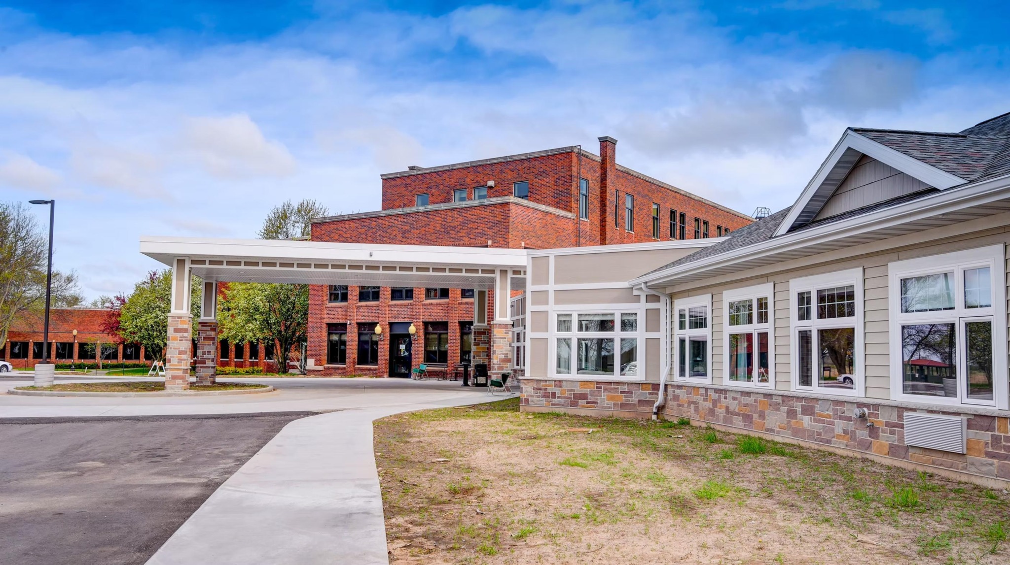 - Honor the existing building architecture while incorporating a homelike atmosphere inside and out.